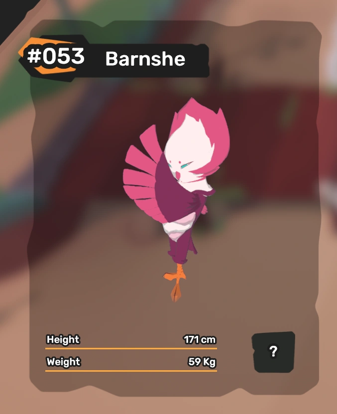Barnshe is a final stage of a two-stage, split evolutionary line. It evolves from female Towly after leveling up 10 times.